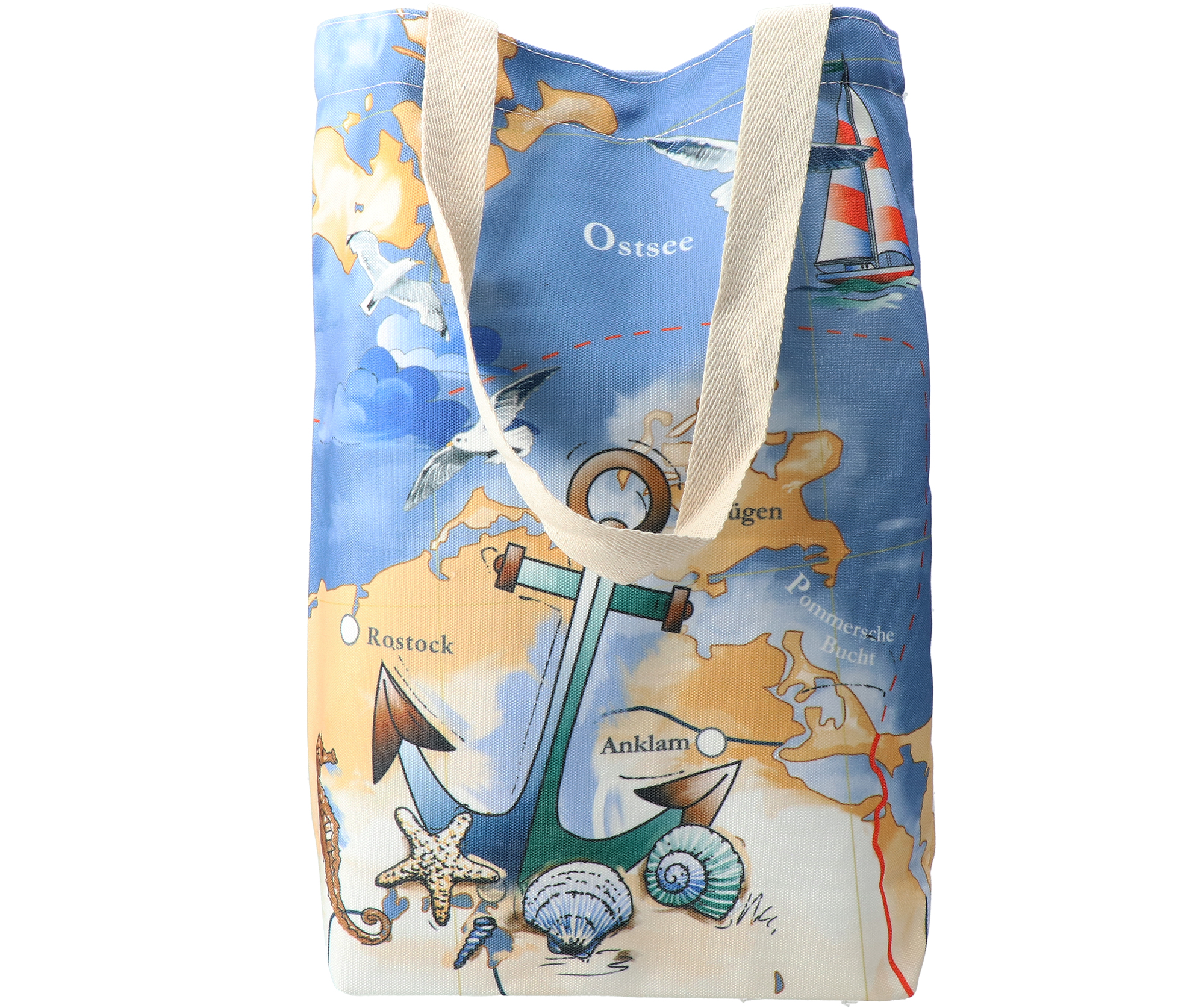 Die Tony Brown Einkaufstasche überzeugt mit einem einzigartigen maritimen Design. Auf der Tasche sind bekannte Standorte wie Kiel, Flensburg, Cuxhaven und Schwerin liebevoll abgebildet, ergänzt durch maritime Symbole wie Strandkorb und Möwen. Dank des robusten Stoffs und der stabilen Henkel ist die Tasche besonders langlebig und praktisch.