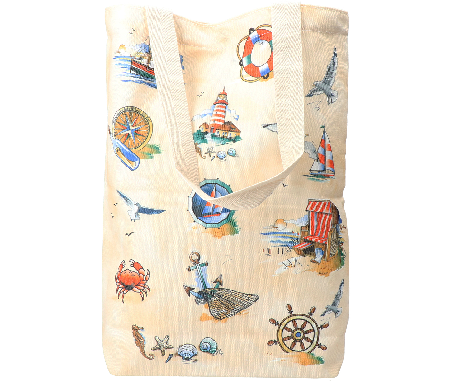 Die Einkaufstasche See beige bringt maritimes Flair in den Alltag. Gefertigt aus robuster Baumwolle und mit langen Henkeln ausgestattet, ist sie der ideale Begleiter für Einkäufe, Strandspaziergänge oder Ausflüge.