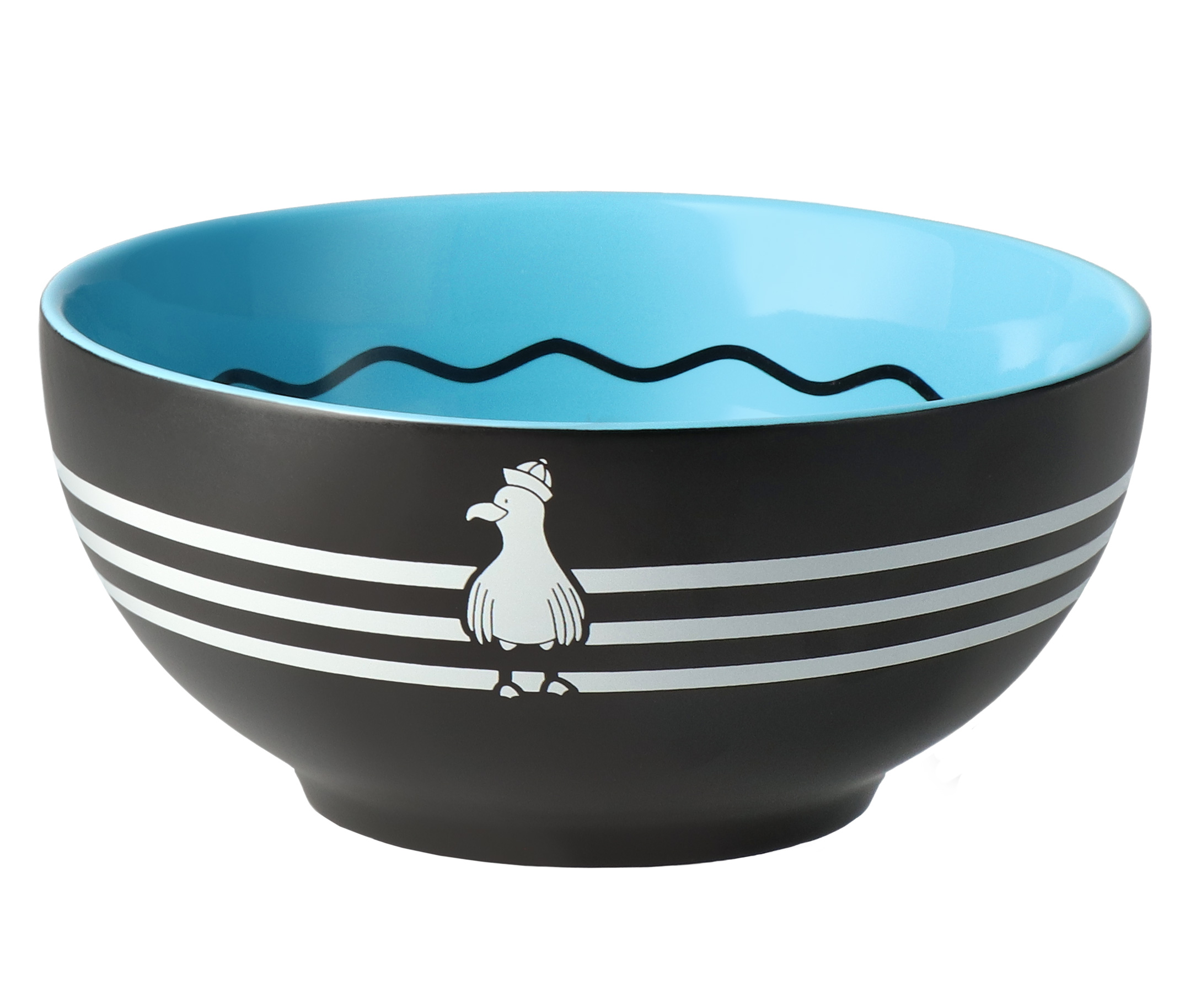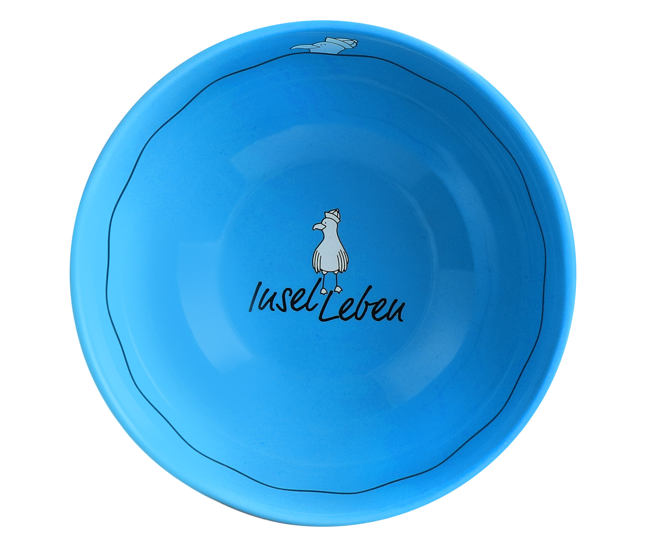 Diese elegante Müslischale kombiniert modernes Design mit maritimen Akzenten. Außen ist sie in klassischem Schwarz gehalten, das von feinen weißen Linien geschmückt wird, was der Schale eine edle Note verleiht. Das Innere der Schale ist in einem frischen Blau gehalten, das für einen stilvollen Kontrast sorgt. Auf dem Boden findet sich eine Möwe und der Schriftzug „Inselleben“, der das maritime Flair perfekt abrundet. Ideal für Müsli, Joghurt oder Snacks – diese Schale bringt einen Hauch von Küstencharme in jede Mahlzeit.