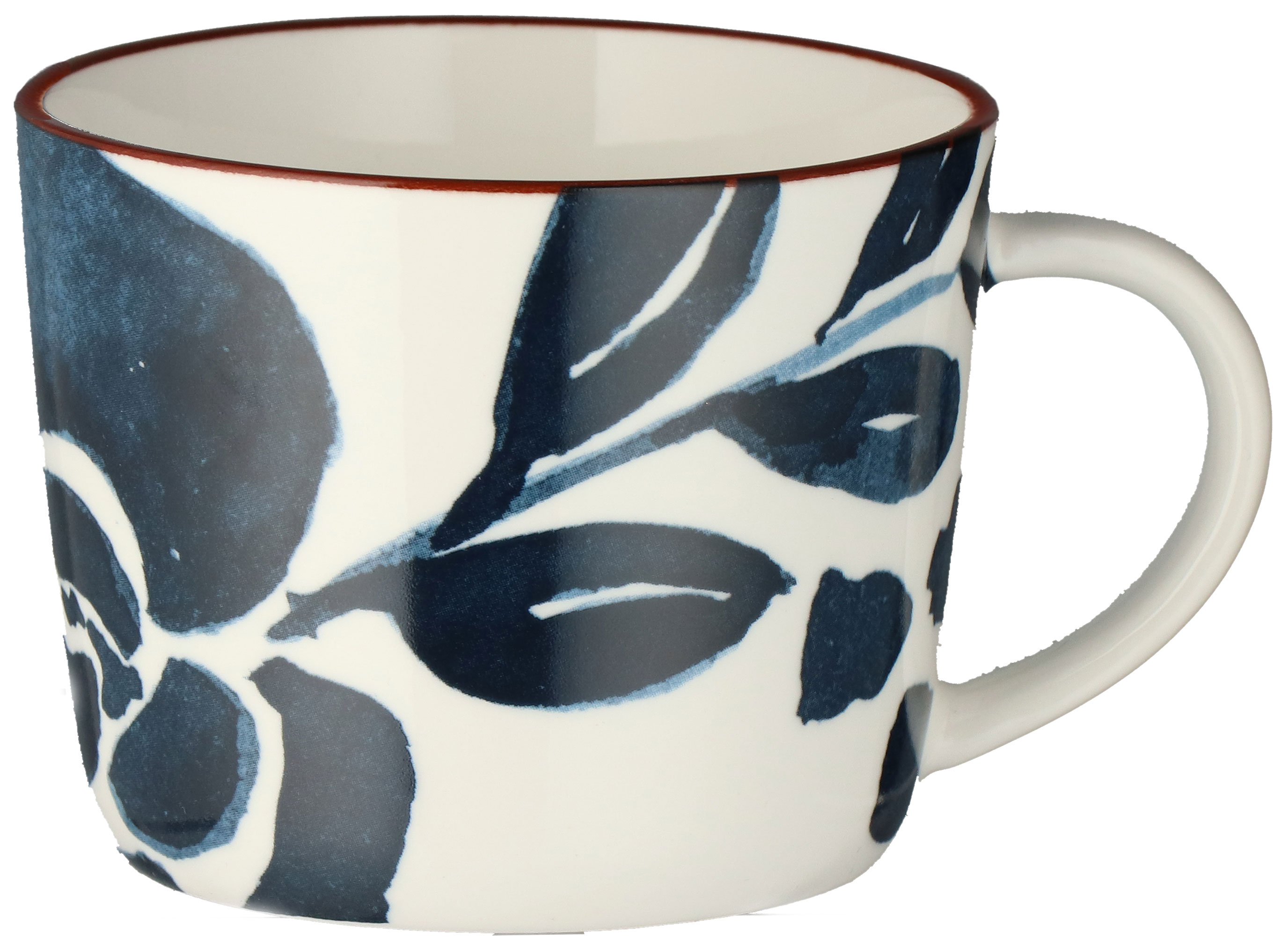 Der Porzellanbecher Flower-Medium überzeugt durch sein ausdrucksstarkes dunkelblaues Blumenmuster auf weißem Grund.