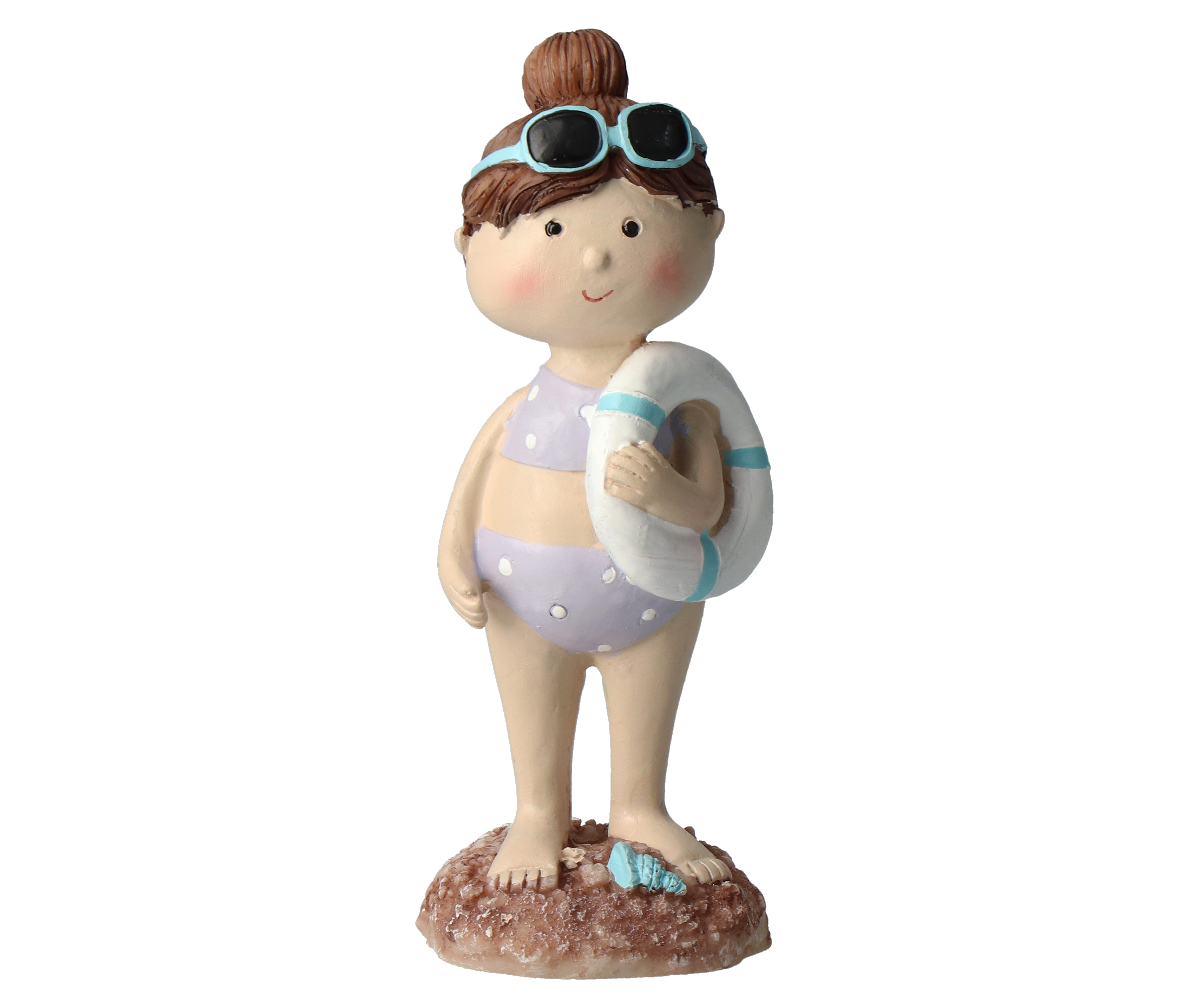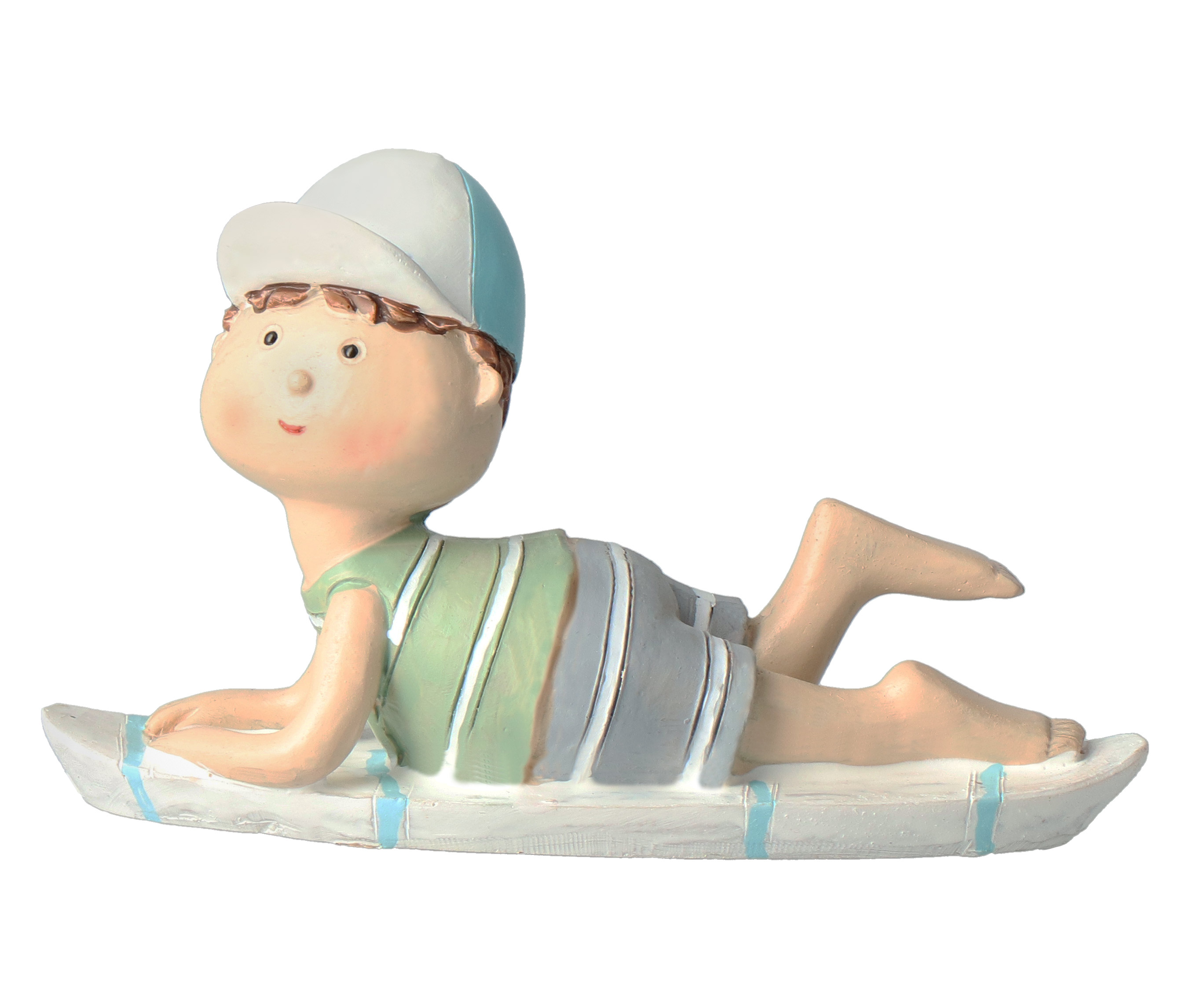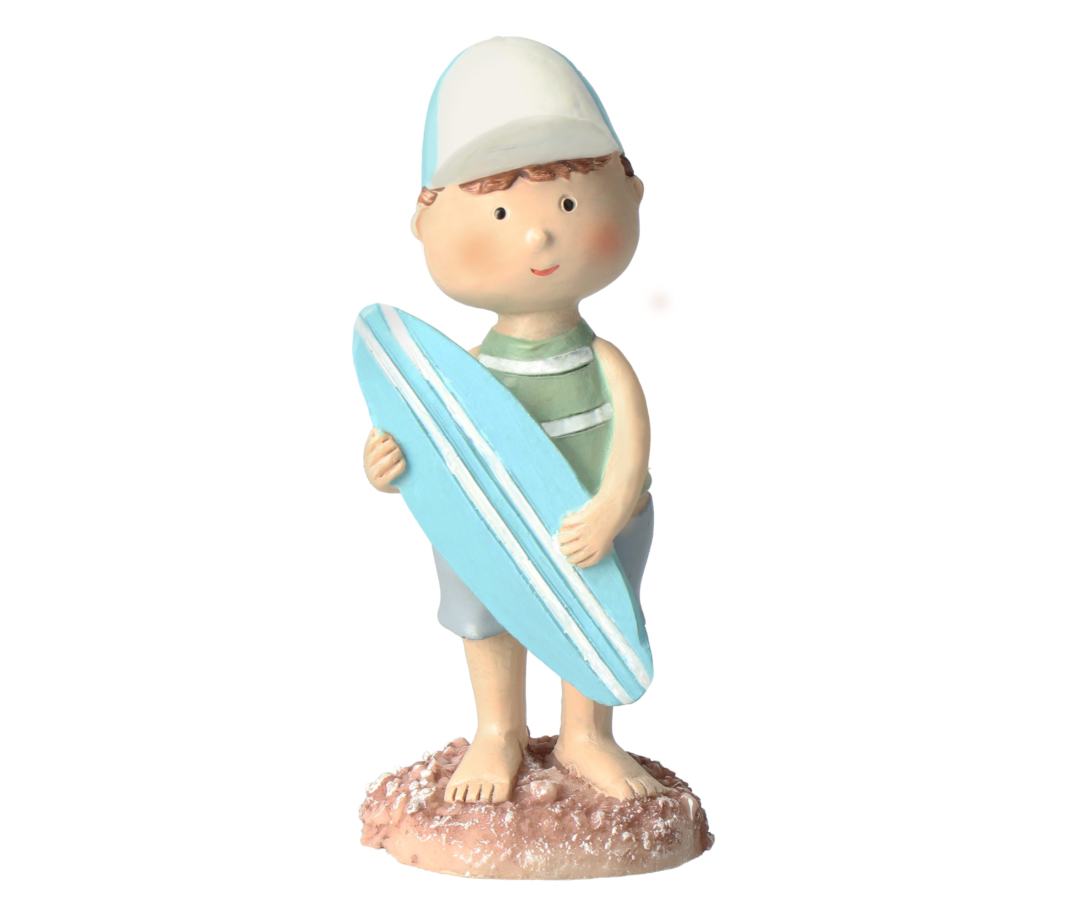 Dieses liebevoll gestaltete Kinder-Duo im Strandstil bringt frischen Wind in jede maritime Deko. Der Junge trägt ein lässiges Strandoutfit und hält stolz sein Surfbrett in der Hand – bereit für die nächste Welle. Das Mädchen steht fröhlich mit einem Schwimmring und trägt eine stylische Sonnenbrille, die ihr einen sommerlichen Look verleiht. Gemeinsam versprühen die beiden Figuren echtes Urlaubsfeeling und sind ein zauberhafter Hingucker für Regale, Fensterbänke oder das Badezimmer. Ideal für alle, die das Meer lieben und sich ein Stück Strand ins Haus holen möchten.