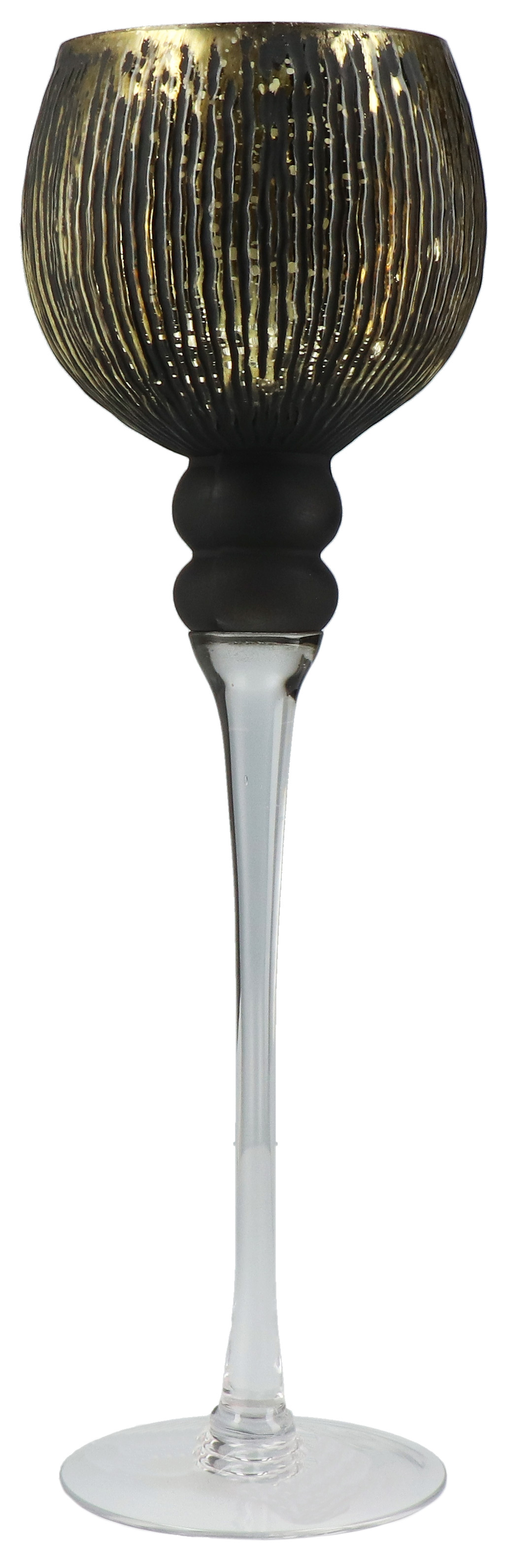 Dieses Weihnachts-Windlicht überzeugt durch seinen edlen schwarzen Fuß und elegante Optik.